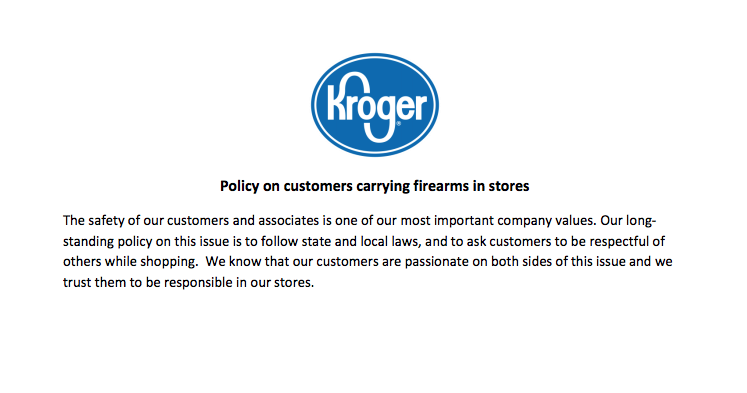 米国で約2,800店舗を展開する食料品チェーン大手のクローガー(Kroger)は3日、店内に公然と銃器を持ち込む「オープン・キャリー」を禁止することを発表した。