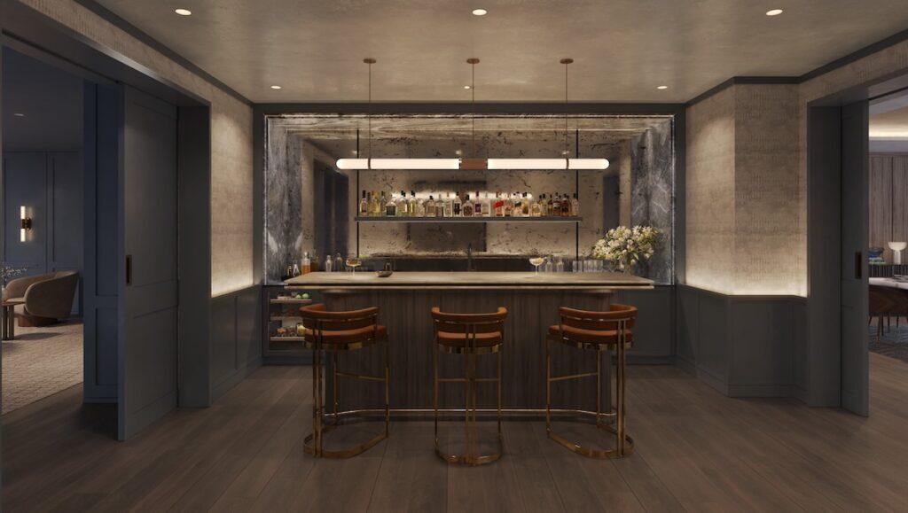 共用施設には、住まう人の日常的な利用を想定した設備が整えられています。バー、ビリヤードやスポーツ観戦ができるゲームラウンジ、ホームパーティーに適したプライベートダイニングルームのほか、フィットネススタジオ、ヨガ・ピラティススタジオ、スカッシュやバスケットボール用の多目的エリアがあります。さらに図書館、専用駐車場、中庭、クリエイティブスタジオ、音楽室など、居住者の多様なライフスタイルを支える施設群が充実しています。